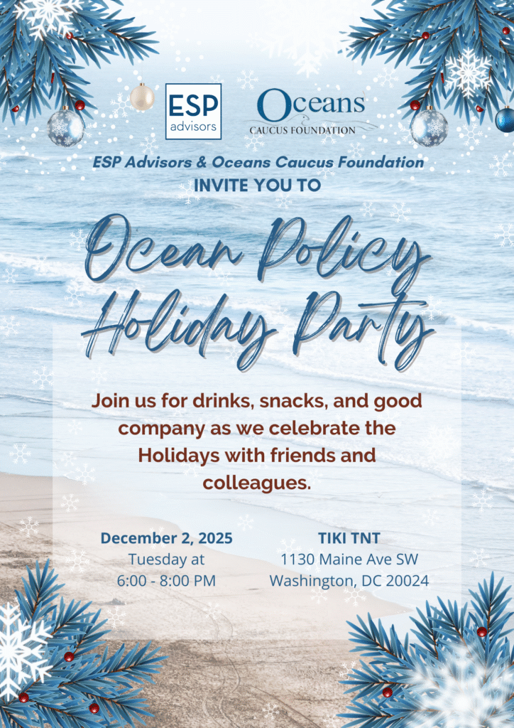 Oceans Caucus Foundation and ESP Advisors are teaming up again to bring you the saltiest holiday party of the season! Join us for drinks, snacks, and good company at the Tiki TNT rooftop bar overlooking the Washington Channel.