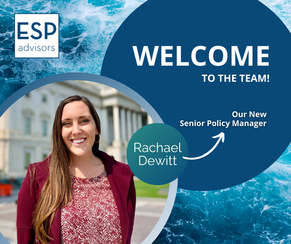 I have long admired ESP Advisors’ leadership and commitment to ocean and environmental advocacy, and I have enjoyed collaborating with this incredible team in my previous roles. As a powerful, women-run consulting firm, I have consistently been impressed with ESP’s ability to get things done, no matter the political climate, and it is a dream to work here.